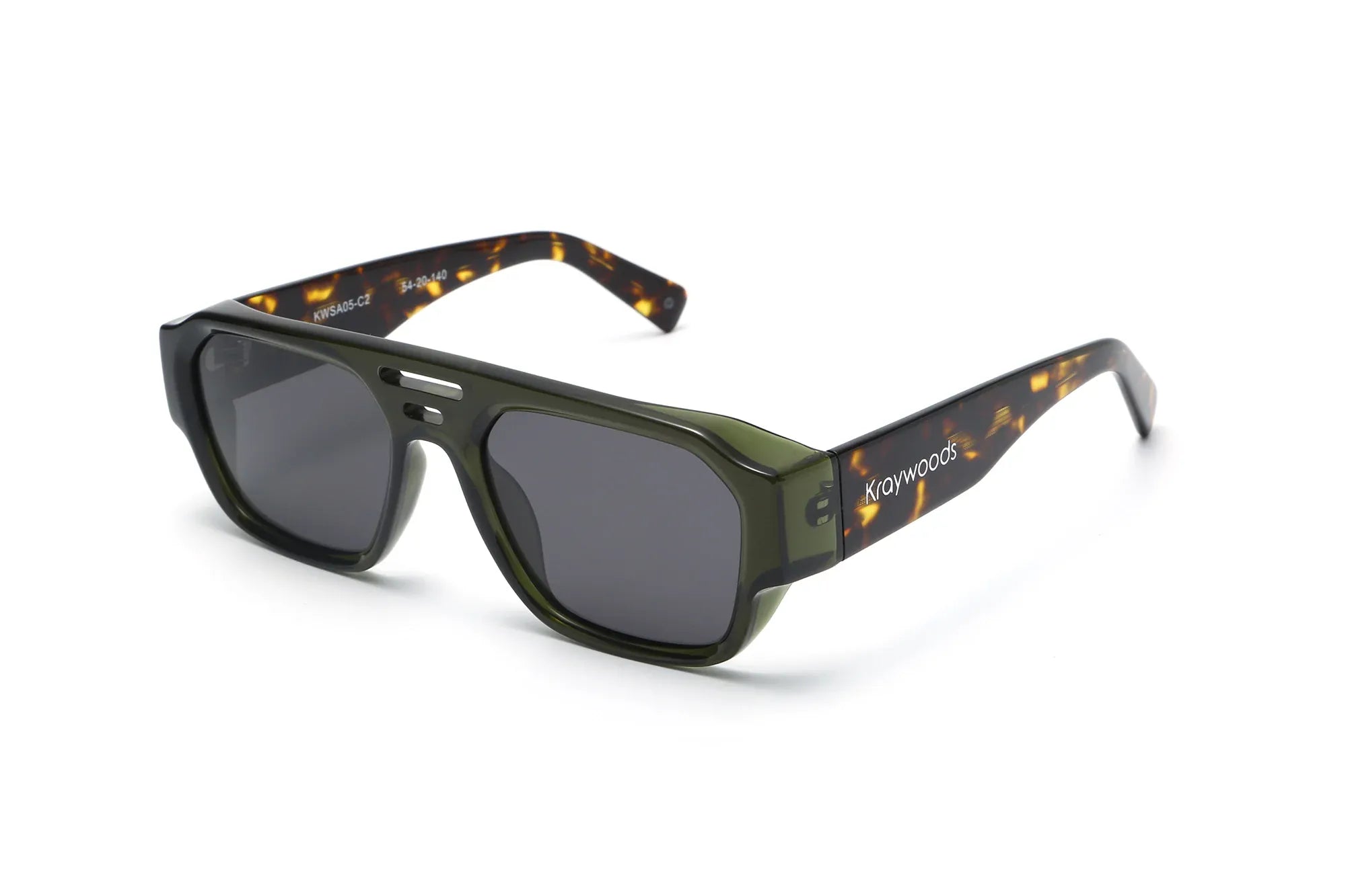 Rohkea tyyli ja moderni särmä Drift-aurinkolasien kanssa - ylisuuret neliskanttiset aviator-mallit, jotka määrittelevät nykyaikaiset silmälasit uudelleen. Paksusta tummanvihreästä asetaatista ja tyylikkäistä kilpikonnanvärisistä temppeleistä valmistetuissa kehyksissä on wrap-siluetti ja leveät sivut, jotka suojaavat täydellisesti auringolta ja antavat vaivattoman itsevarman ilmeen.