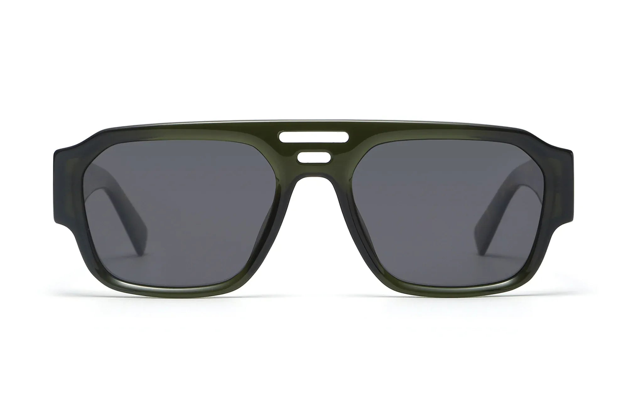 Adoptez un style audacieux et moderne avec les lunettes de soleil Drift - un modèle aviateur carré surdimensionné qui redéfinit les lunettes contemporaines. Fabriquées en acétate épais vert foncé avec d'élégantes branches en tortue, ces montures sont dotées d'une silhouette enveloppante et de larges côtés pour une protection solaire totale et un look sûr de lui sans effort.