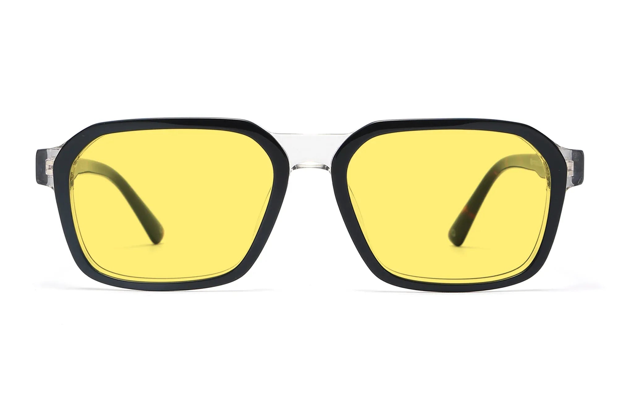 Ti presentiamo gli occhiali da sole Haya, una montatura da aviatore squadrata e contemporanea che unisce un design senza tempo a una versatilità moderna. Realizzata a mano in elegante acetato nero e trasparente, questa montatura audace ma raffinata offre un contrasto sorprendente che si abbina perfettamente a qualsiasi colore di lenti.