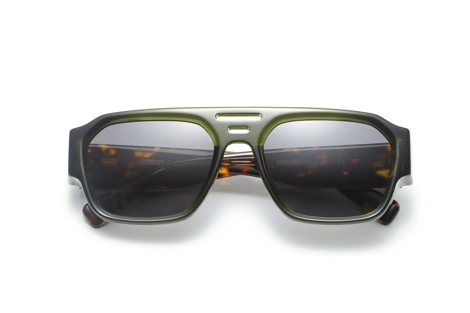 Embrace bold style and modern edge with the Drift sunglasses — an oversized squared aviator design that redefines contemporary eyewear. Crafted from thick dark green acetate with elegant tortoise temples, these statement frames feature a wrap silhouette and wide sides for full sun protection and an effortlessly confident look.