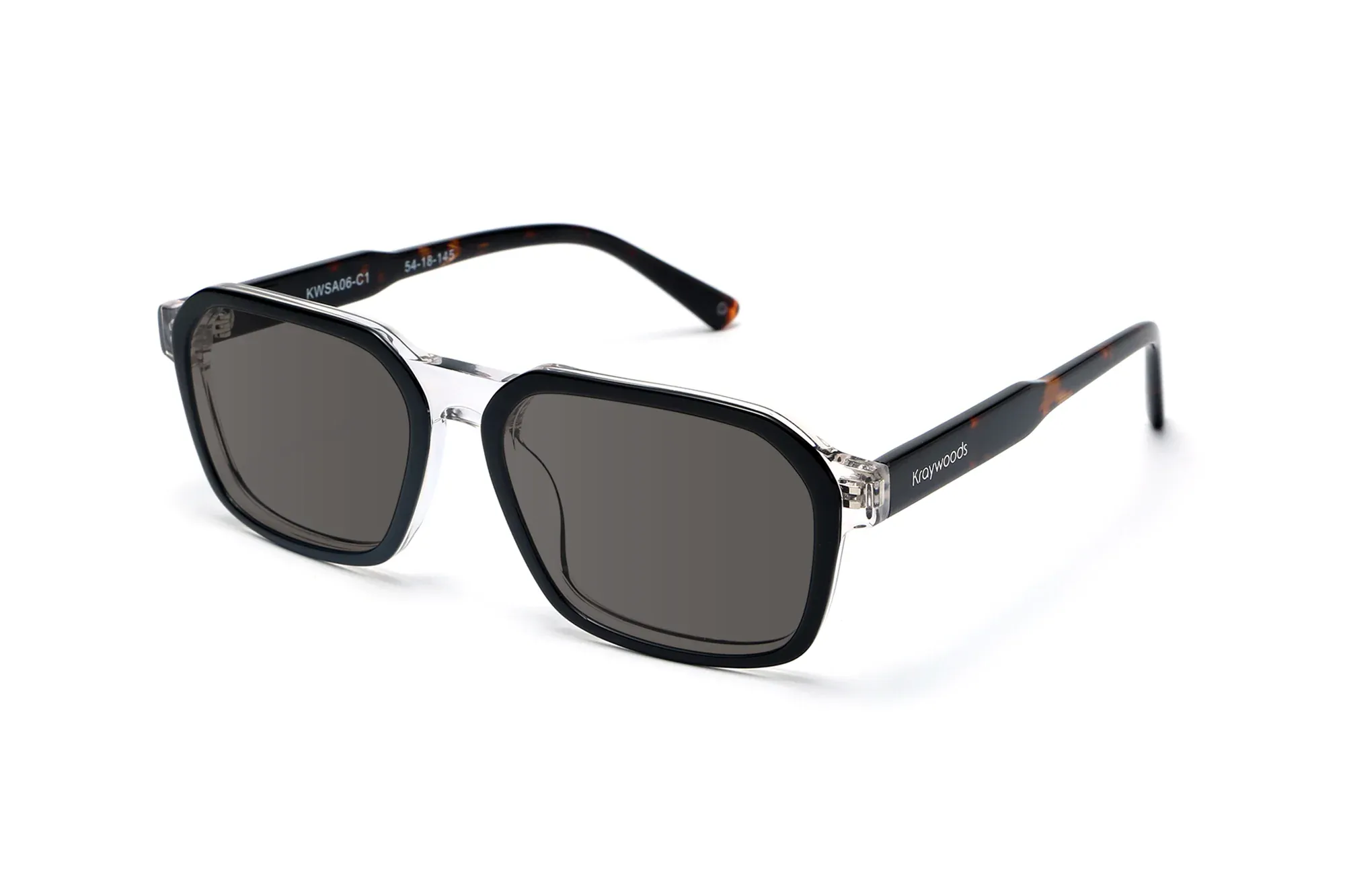 Meet the Haya sunglasses — a contemporary squared aviator frame that blends timeless design with modern versatility. Handcrafted from sleek black and clear acetate, this bold yet refined frame offers a striking contrast that effortlessly complements any lens color.