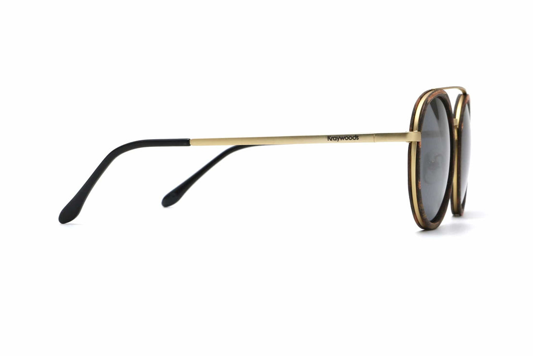 Prepara-te para te tornares mais fashion com estes óculos de sol redondos dourados! Fabricados em luxuosa madeira de ébano e adornados com detalhes em metal dourado, estes óculos são o epítome da sofisticação e do estilo. As armações redondas polarizadas são um must-have para qualquer pessoa na moda, e as lentes polarizadas cinzentas escuras fornecem a proteção necessária contra os raios UV nocivos do sol.