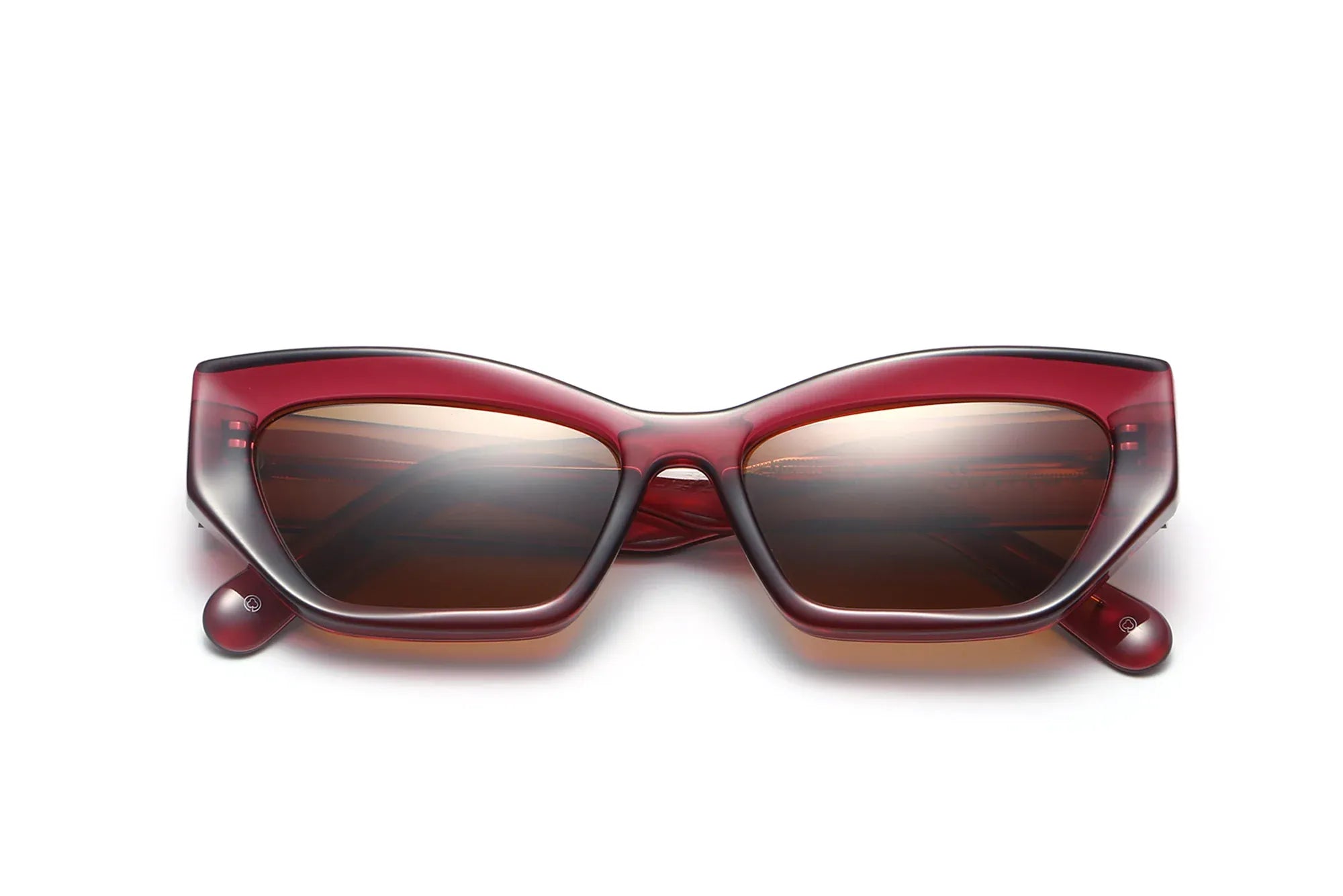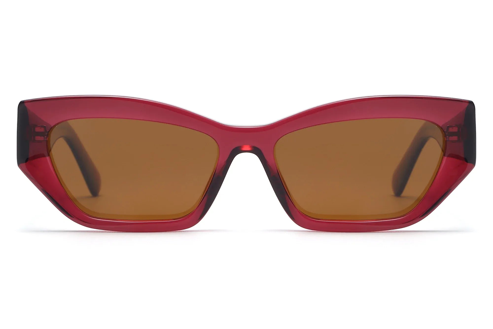 Deixa uma impressão ousada com os óculos de sol Riley Red - uma impressionante armação geométrica de olho de gato com asas, concebida para chamar a atenção. Fabricados em acetato espesso e rico de cor vermelho-vinho, estes óculos de sol marcantes apresentam hastes largas e uma silhueta esculpida, combinando confiança com elegância contemporânea e um toque de cor quente e sofisticado.
