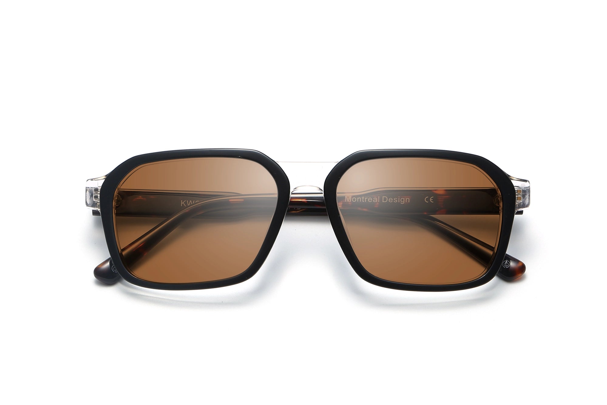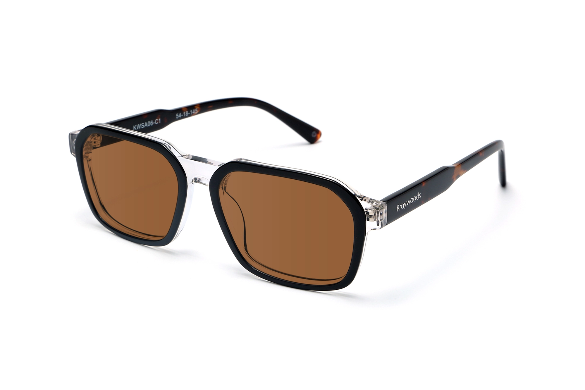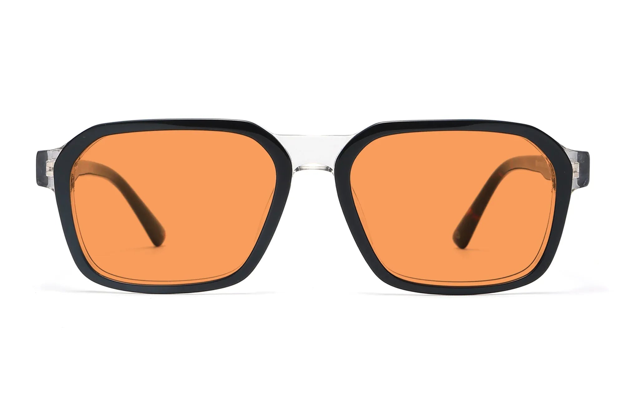 Möt Haya-solglasögonen - en modern fyrkantig aviatorbåge som blandar tidlös design med modern mångsidighet. Denna djärva men raffinerade båge är handgjord av elegant svart och klar acetat och erbjuder en slående kontrast som enkelt kompletterar alla linsfärger.